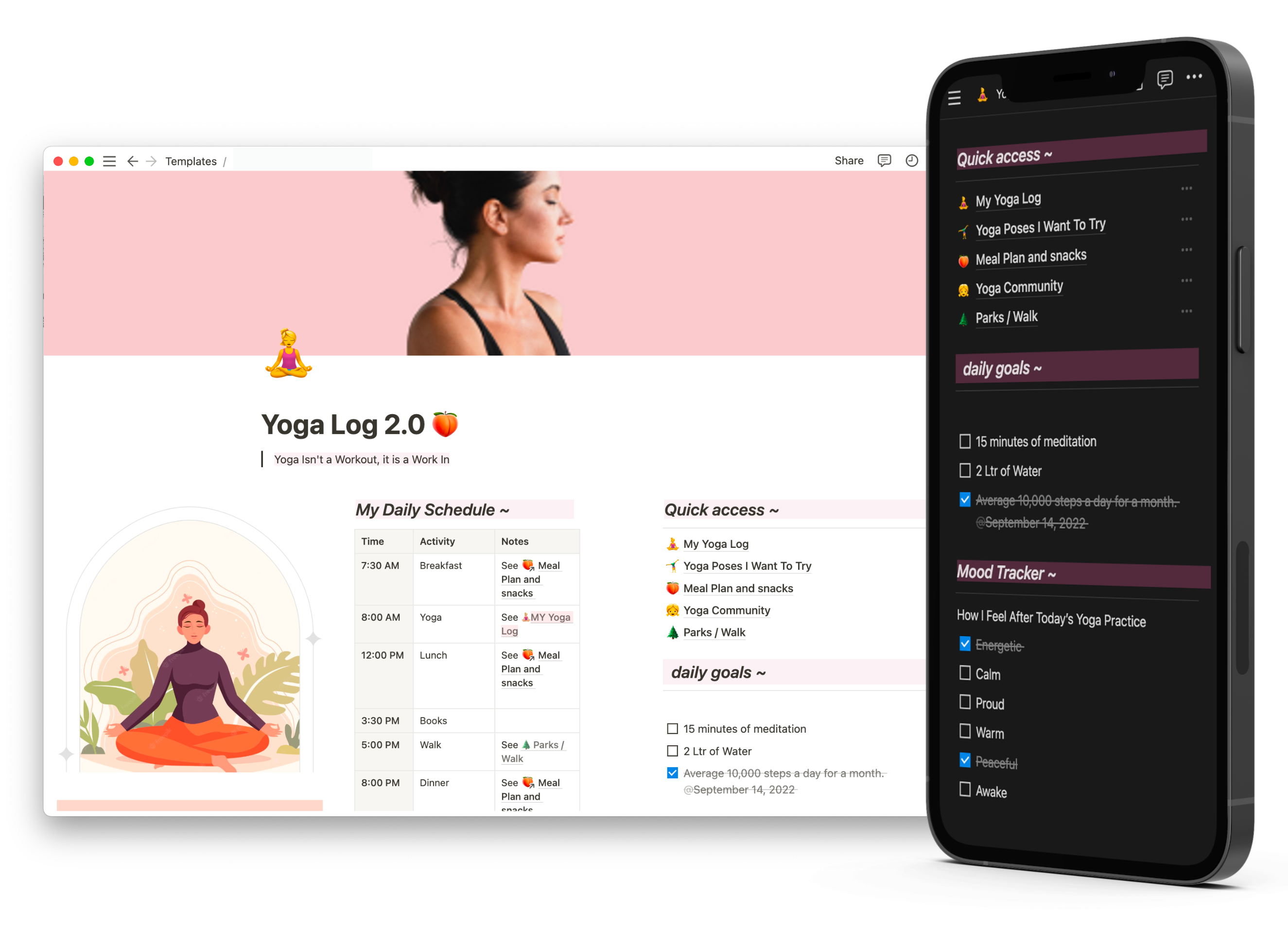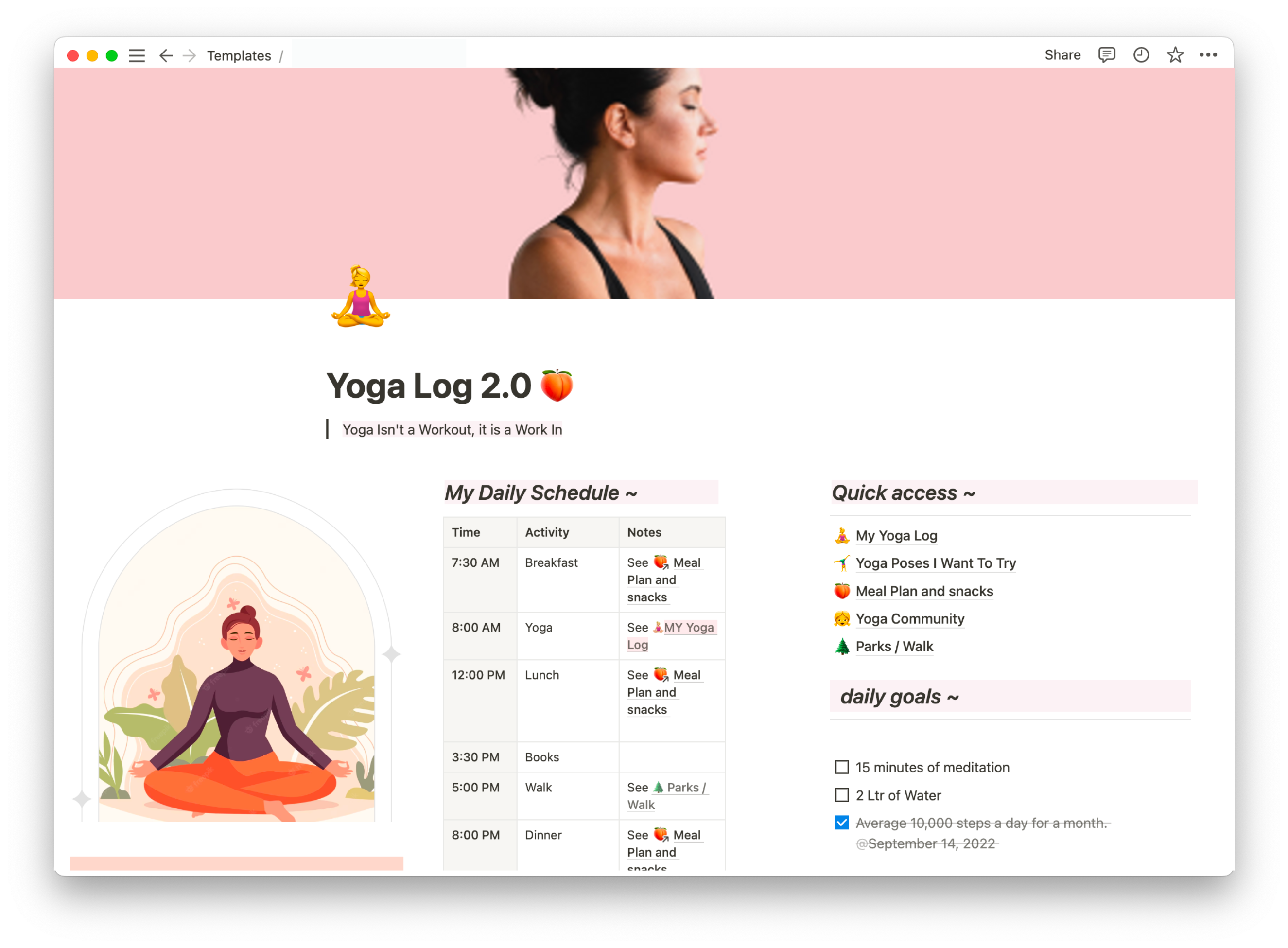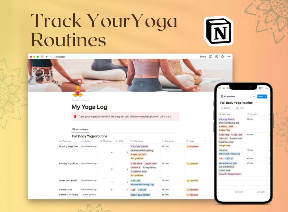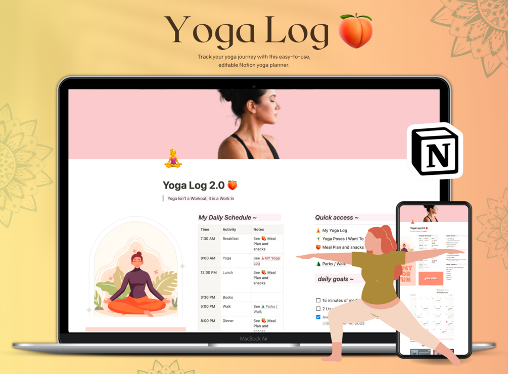 Track your yoga journey with this easy-to-use, editable Notion yoga planner.